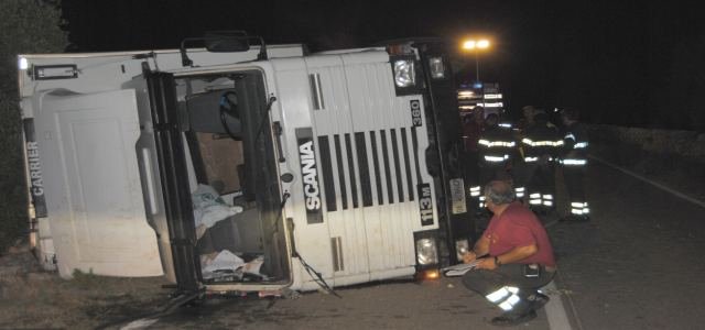 Un autoarticolato si è ribaltato dopo aver perso il controllo. Probabilmente nell’affrontare la curva – forse per l’alta velocità – il conducente del mezzo non è più riuscito a tenere il grosso camion sulla strada, perdendo stabilità.